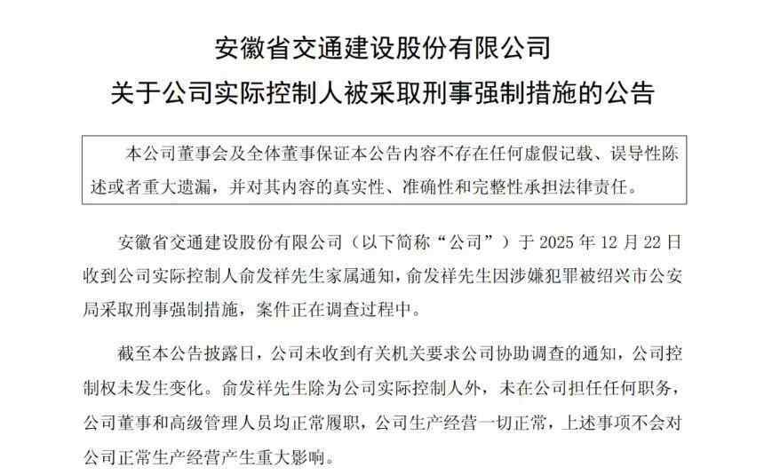 12月22日晚间,祥源文旅(600576.SH)、交建股份(603815.SH)、海昌海洋公园(02255.HK)三家上市公司同步发布重磅公告,披露公司实际控制人俞发祥因涉嫌犯罪,已被绍兴市公安局采取刑事强制措施,相关案件正在调查过程中。