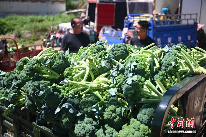 2025年8月13日,在甘肃省兰州市榆中县马坡乡,蔬菜经销商与农户进行高原夏菜收购工作。李亚龙 摄