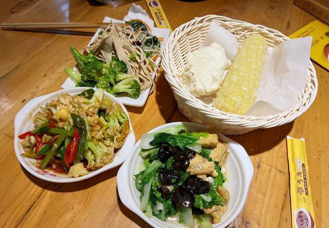 我们人不多,吃不了太多,弟妹便张罗着点了三样菜,又要了粥和主食。不多时,菜就上齐了。不大的方桌,瞬间被摆得满满当当,热气伴着香气直往鼻子里钻。