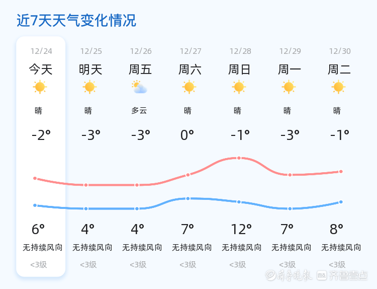 明日(12月25日),济宁市天气仍以晴朗为主,气温略有下降,预计在-3℃至4℃之间。相较于今日,明日的最高气温将下降2℃,最低气温将下降1℃。市民出行时需注意防寒保暖,尤其是早晚温差较大,建议增添衣物以应对寒冷。