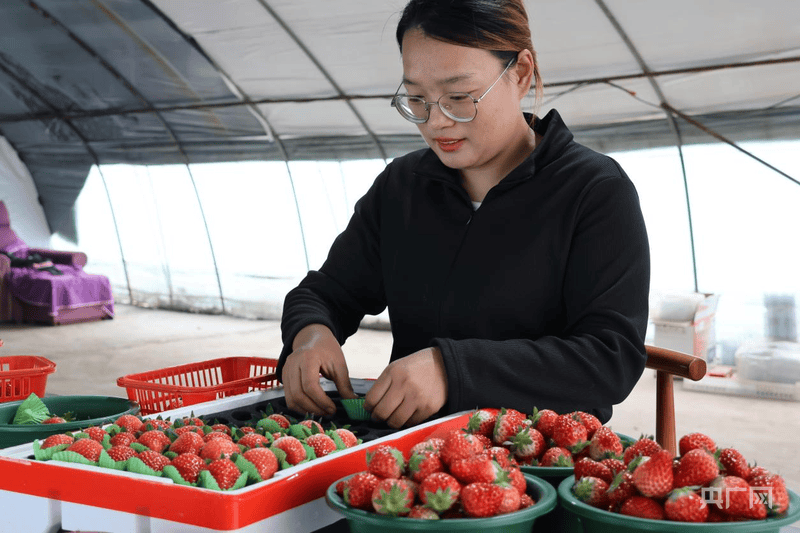 如今,在她的科学管理下,草莓长势喜人,她也将大棚数量从13个扩增至20个,还丰富了种植品种。目前园内共种有红颜、章姬、奶香等5个品种的草莓。