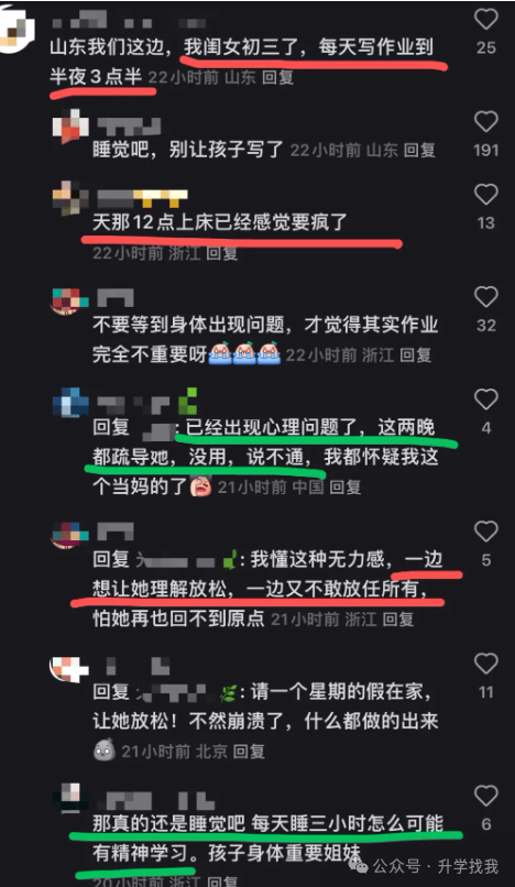 山东有网友留言,自家女儿初三年级,每天写作业到半夜三点多。