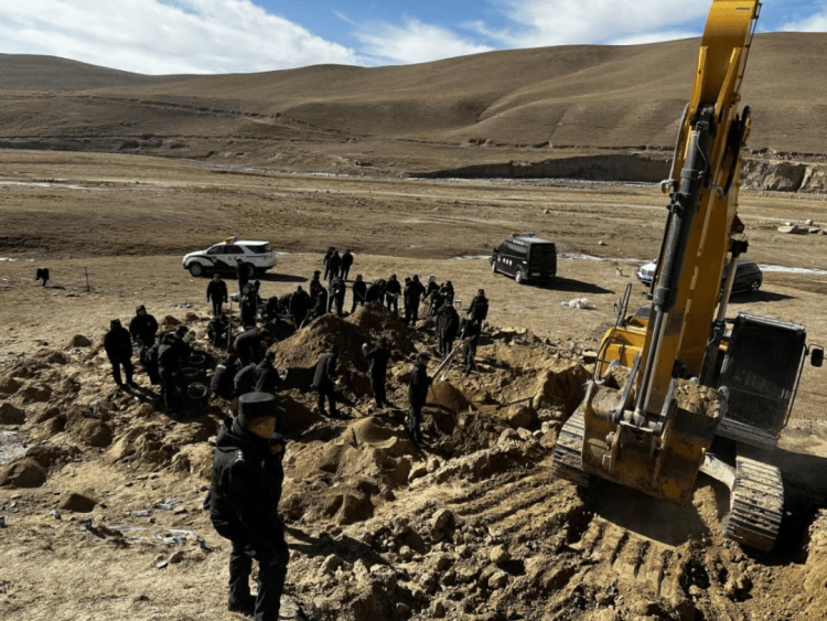 依据犯罪嫌疑人交代及指认,民警找到了疑似埋尸地点。12月24日,上游新闻记者获悉,埋尸地地处高原,周边相对比较荒芜,为了能固定证据,找到被害人的遗骸,当地警方租用挖掘机对现场进行挖掘。由于事发已经过去16年,警方又抽调80名警力,购买筛网、刷子、铲子等工具,对周边进行昼夜挖掘。当地警方表示,挖掘土方约有40立方米。