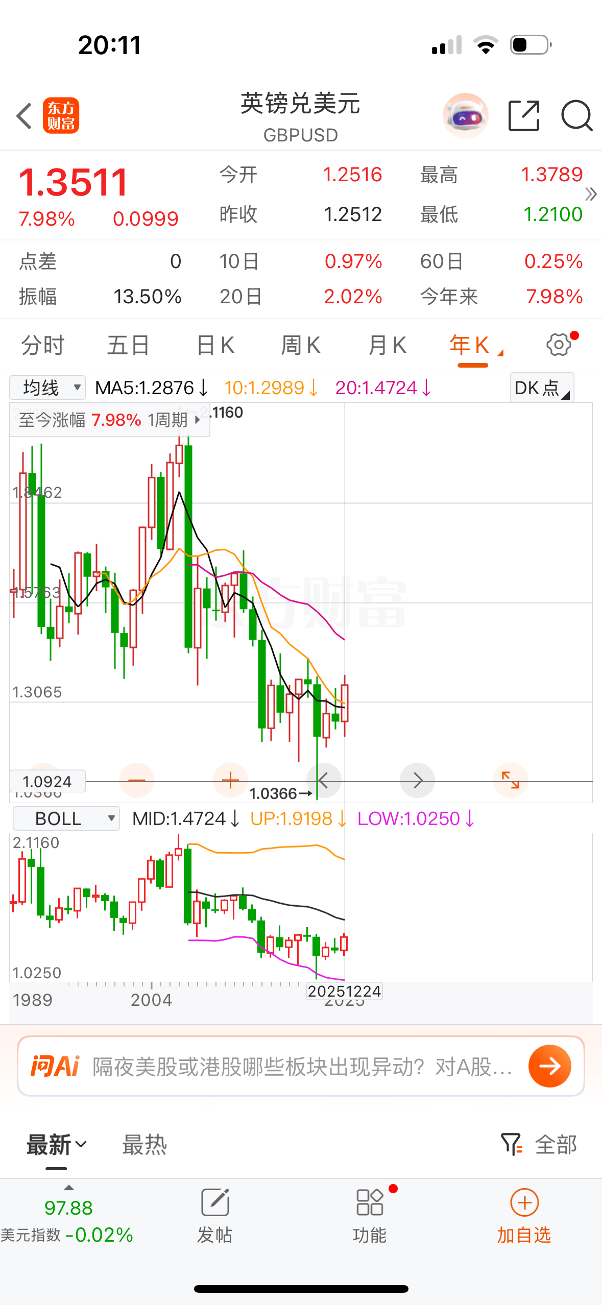 英镑对美元今年以来涨幅7.98%