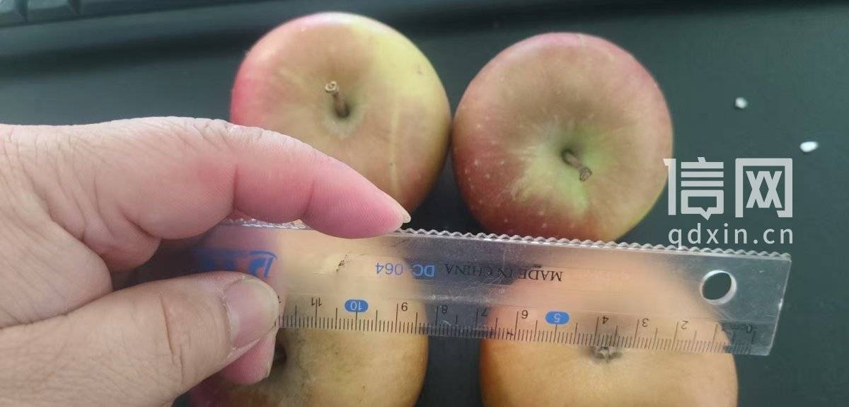 唐先生自称是“蛋蛋”的忠实粉丝,此前曾多次在其直播间网购商品。近期,他看到“蛋蛋”直播间在推销阿克苏苹果,主播多次强调,她们卖的苹果个头大、味道好。11月30日,唐先生下单了4份“直径80-85毫米中号果”,每份5斤售价29.9元。12月15日,收货开箱后,唐先生感觉果子与订单上标注的尺寸似乎有点出入,拿尺子一量,最大的一颗直径也只有65毫米。“这四箱果子我准备留一箱,其它送给亲友,结果给我发来些‘迷你袖珍果’,根本拿不出手。”唐先生说:“已经提前打电话和亲友们‘预报’要送苹果了,还得再跟人家解释一遍,属实有点尴尬。”