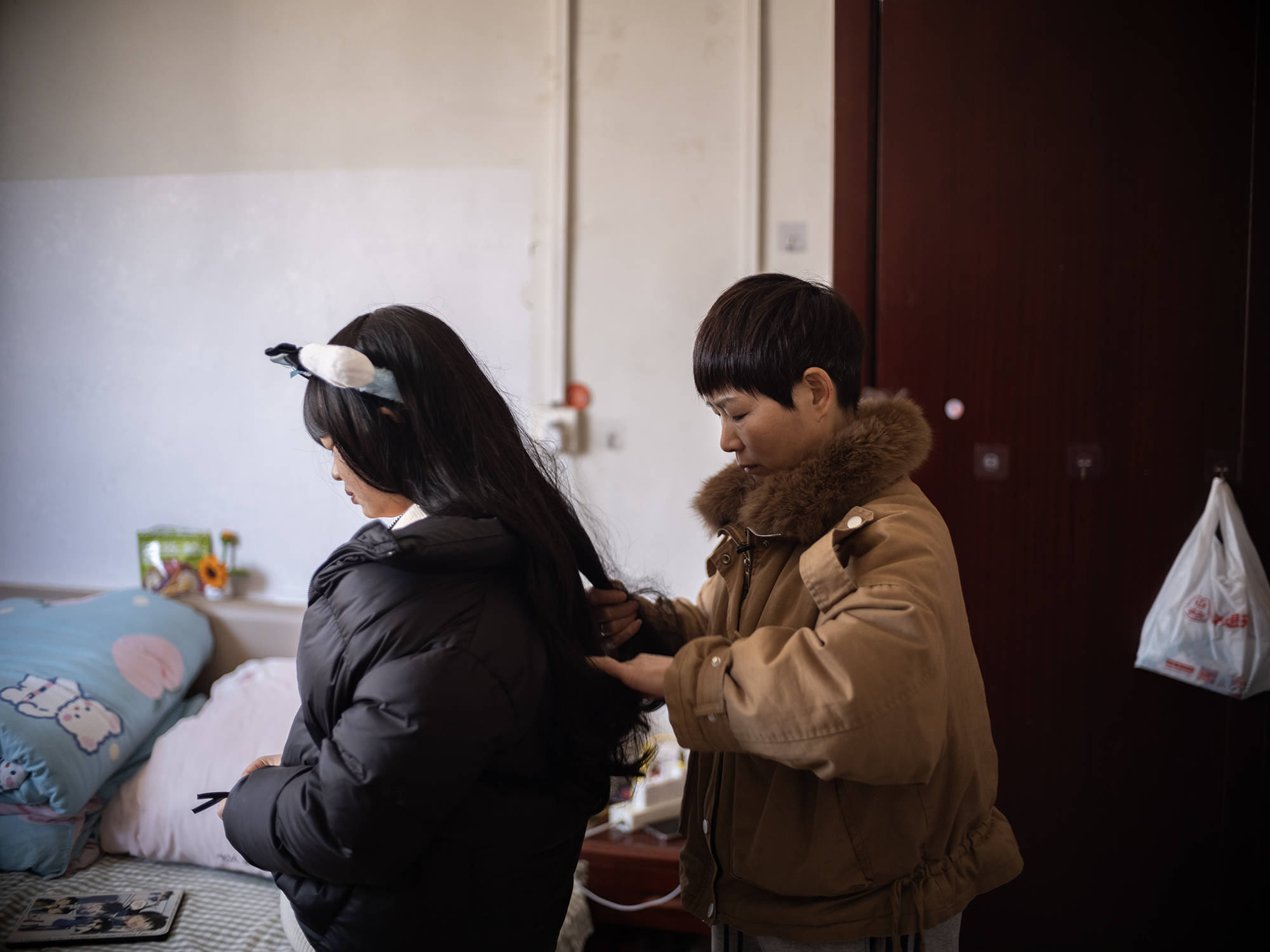 刚来那阵,子棋也会跟着来,担心妈妈突然不要她了。子棋十二岁,在这些孩子里算大的,很懂事。化疗之后她的头发全掉了,结疗回去上学,同学笑她像男孩子。她学习跟不上,老师对她的态度也不好,认为她拖班级后腿。但子棋告诉我,很多事她都没跟妈妈说,怕妈妈更难受。有一次天特别热,她戴着假发,穿着裙子,努力让自己看起来像个普通的小女孩。
