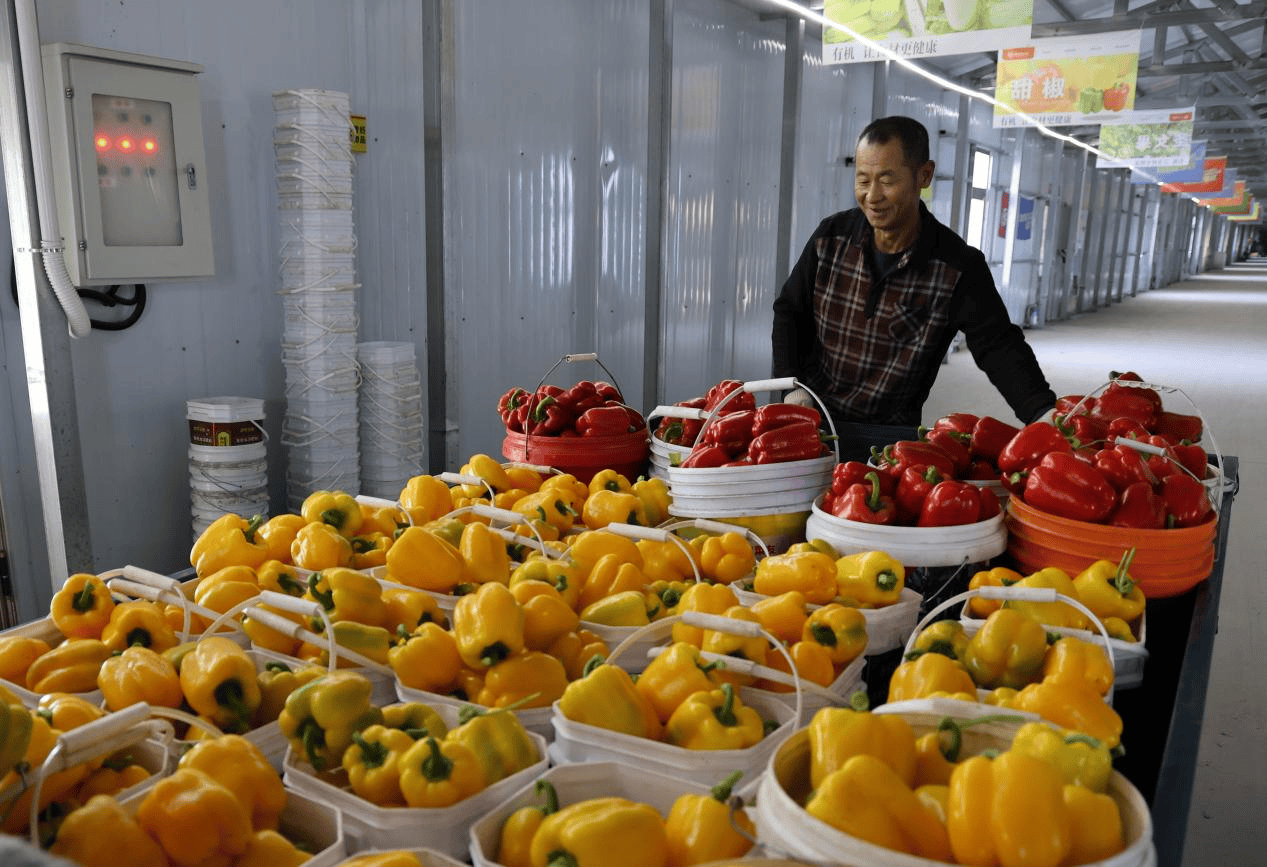 “黄色的每斤14块钱左右,红色的每斤8到10块钱。一个棚一亩地,能产6000多斤,收入6万多块钱。”产业园技术总监董海涛正和工人一起摘椒、装车,他说,这些五彩椒将远赴1800多公里的上海,“椒”傲地闯进大都市的餐桌。