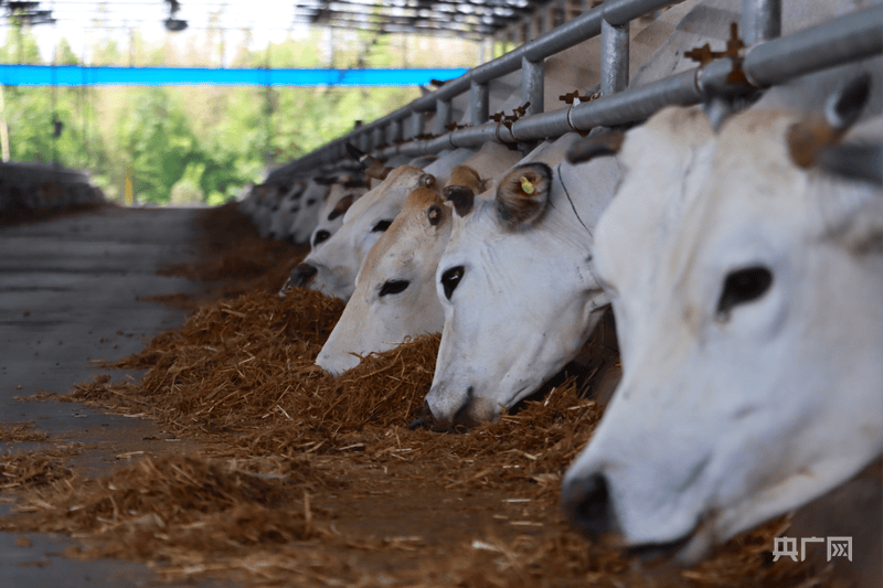一排排皮南牛正在进食(央广网发 王凯 摄)