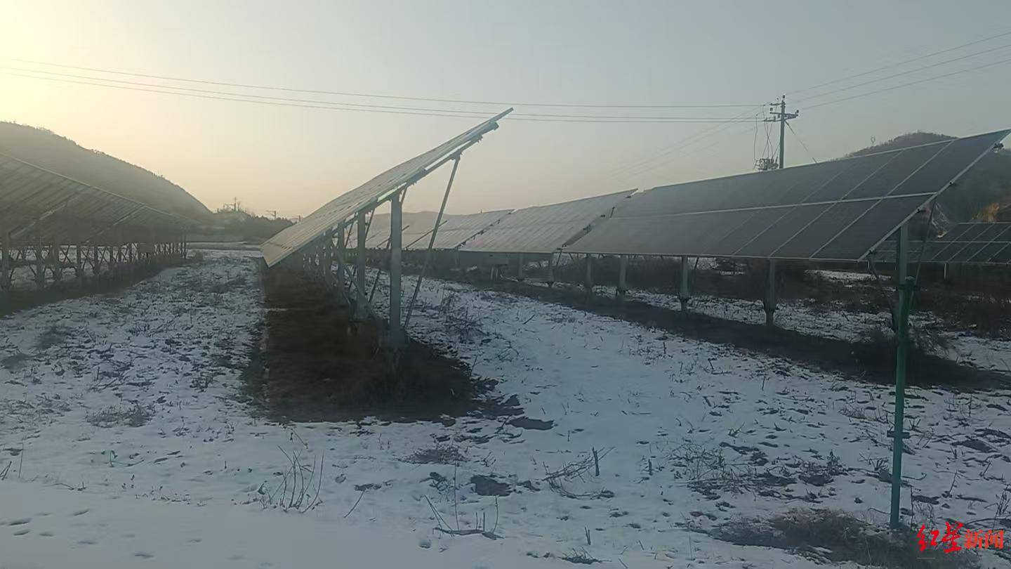 杨某向红星新闻记者提供了现场所拍摄的照片和视频,显示该光伏发电项目为子长市新能源开发有限公司11.7兆瓦光伏电站。在这片耕地上,光伏电板一排排错落摆放在田埂之间,经过一场大雪之后,田地间的雪还没有融化,只有光伏电板下面未落雪长着荒草。