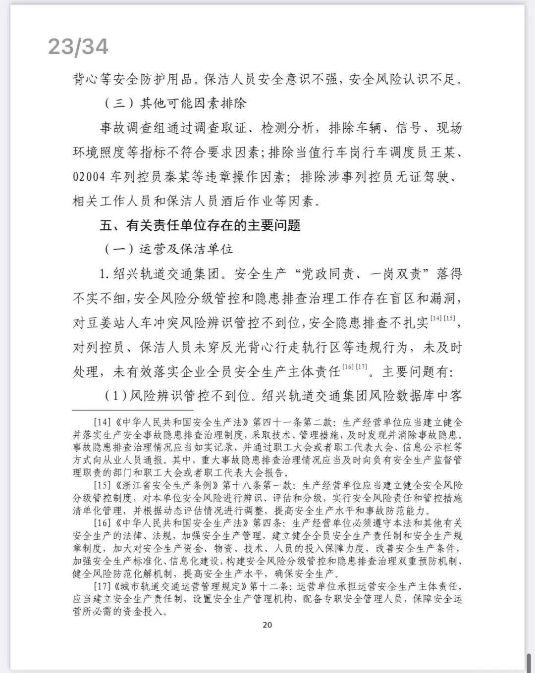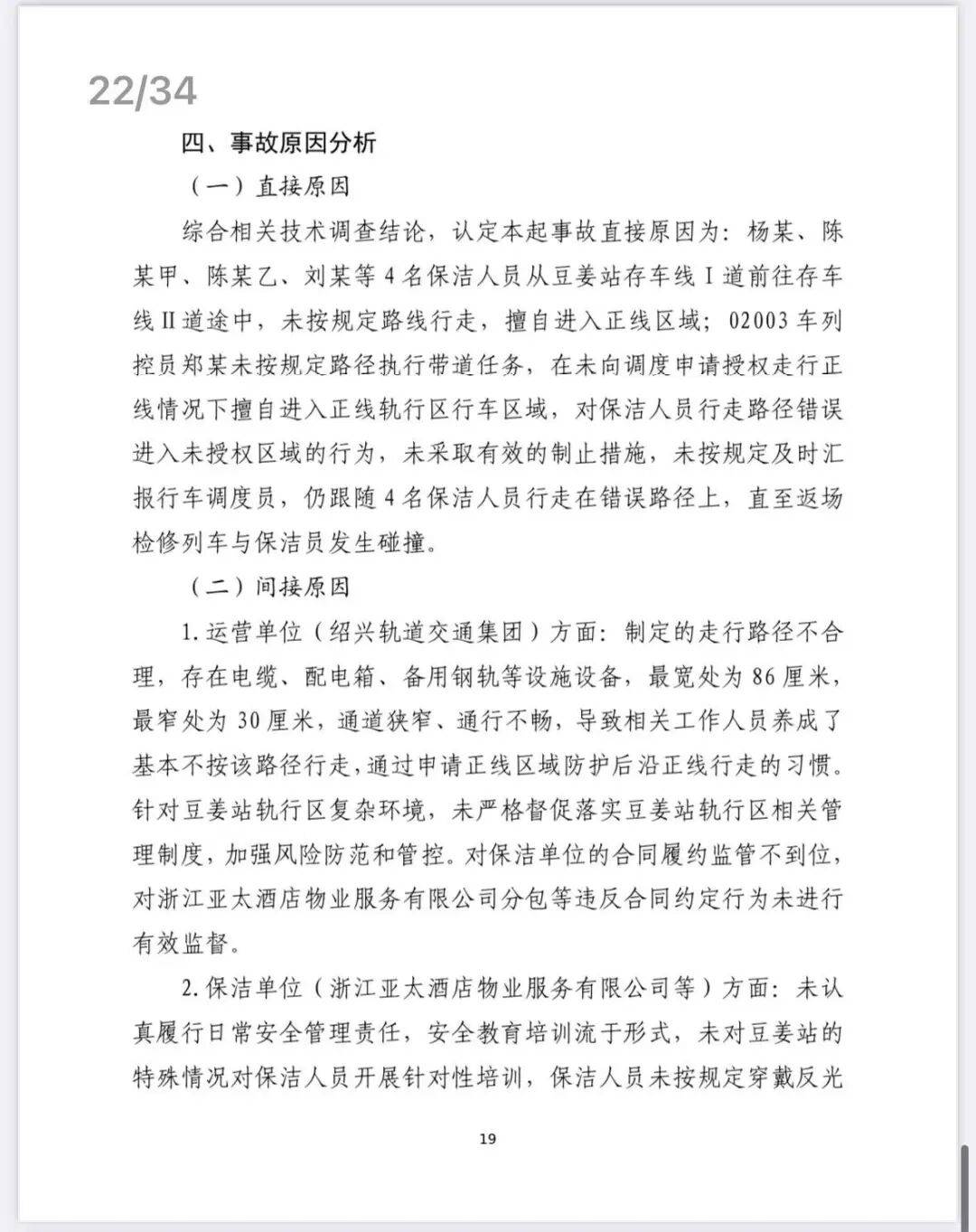 调查认定,绍兴市“9·13”轨道交通较大事故是一起因涉事企业安全风险辨识管控不到位、从业人员违反安全操作规程等导致3人死亡、1 人重伤的生产安全责任事故。