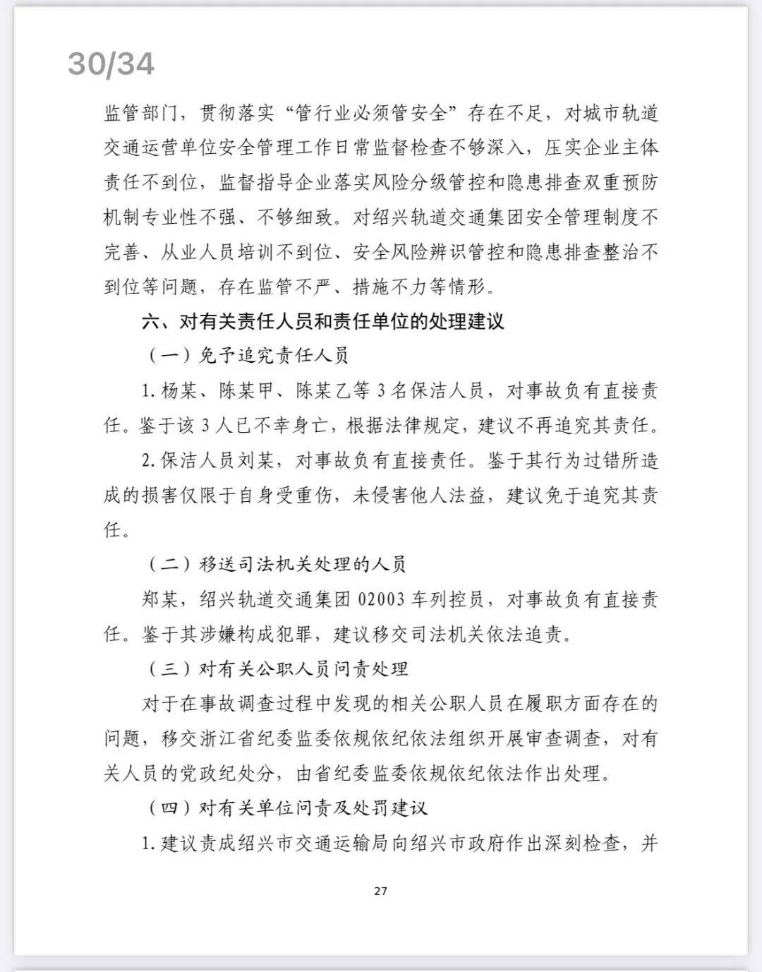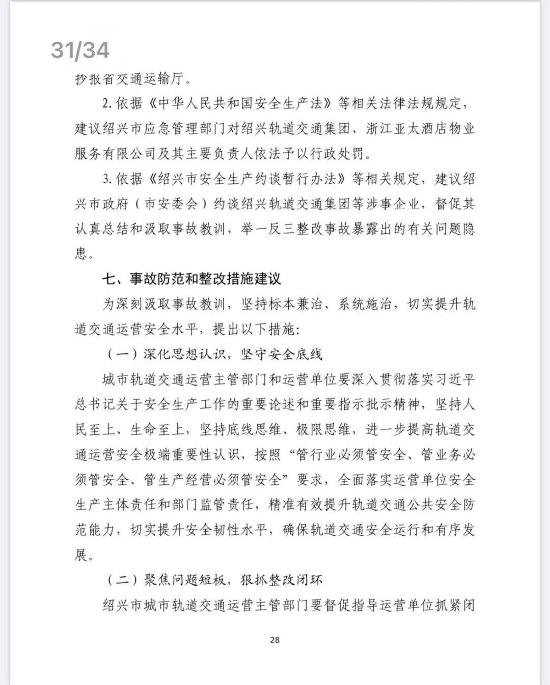 3.依据《绍兴市安全生产约谈暂行办法》等相关规定,建议绍兴市政府(市安委会)约谈绍兴轨道交通集团等涉事企业,督促其认真总结和汲取事故教训,举一反三整改事故暴露出的有关问题隐患。