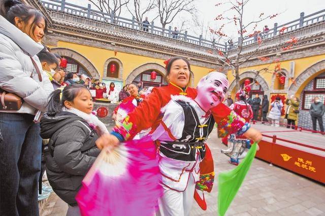 12月21日,游客在三门峡市陕州地坑院观赏非遗节目表演。毕兴世 摄