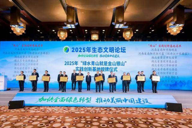 12月24至25日,由中国生态文明研究与促进会主办的“2025年生态文明论坛”在北京召开。生态环境部部长黄润秋出席主题论坛并致辞。在主题论坛上,举行了生态文明建设示范区及“绿水青山就是金山银山”实践创新基地授牌仪式。南阳市内乡县获授“生态文明建设示范区”称号,西峡县、淅川县(环丹江口水库区)荣膺“绿水青山就是金山银山”实践创新基地称号。淅川县,西峡县在相关论坛上作经验交流发言。