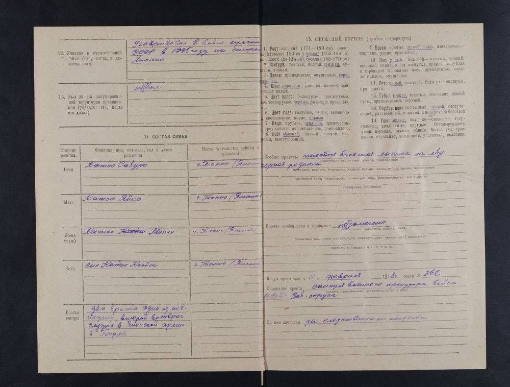 这份笔供形成于1948年2月17日,是加藤恒则在苏联赤塔被捕后的供述材料。全卷由日文亲笔原件及俄文译稿组成,涵盖了被捕者档案、个人信息登记表及详细罪行陈述。作为543支队(海拉尔支队)的最后一任队长,加藤恒则拥有高等医学背景,是直接参与731部队核心犯罪的高级军医官。