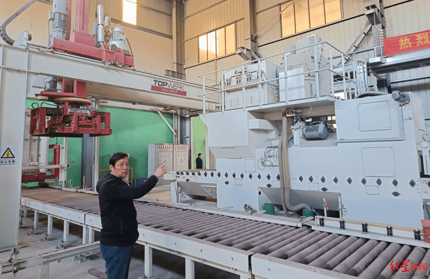 ▲王志立站在公司自动化生产线前,该生产线目前闲置