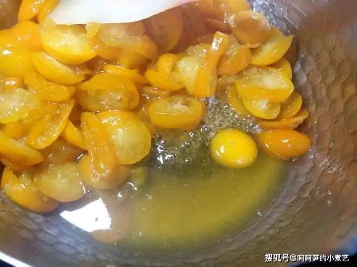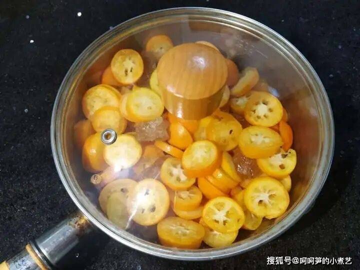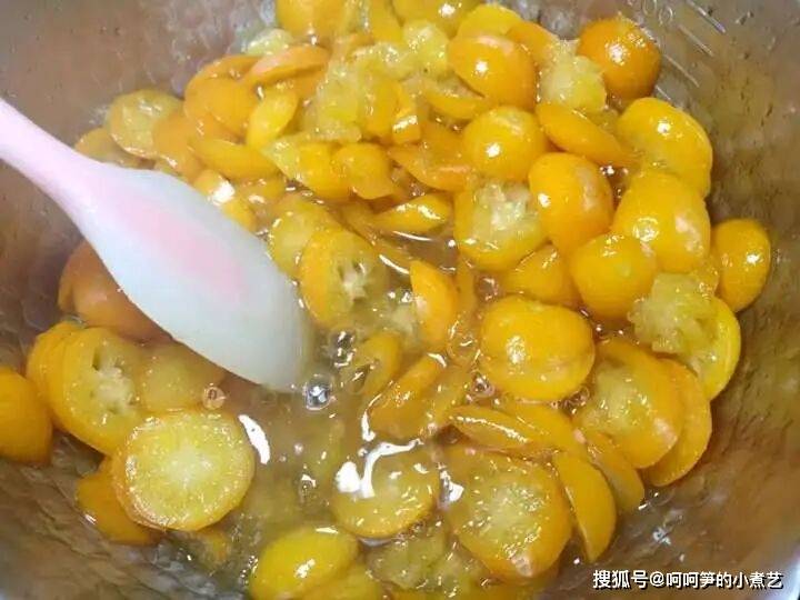 金桔本身的汁水就很多,所以无需再加水,如果加了水,在熬煮的过程中又因金桔本身出的水,不仅会增加熬煮的时间,也会让蜜渍金桔不易黏稠。