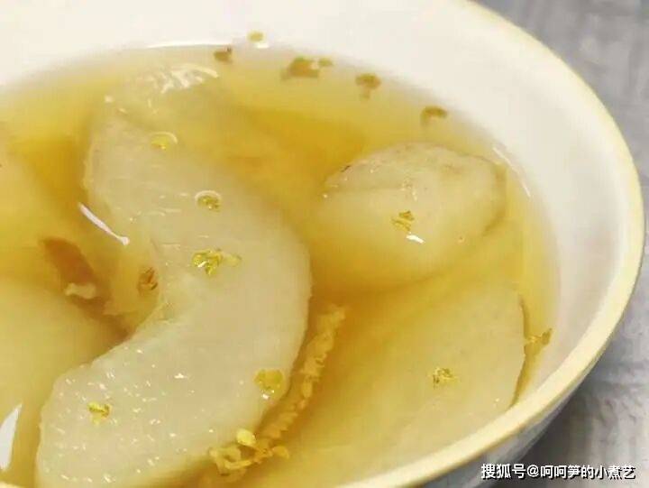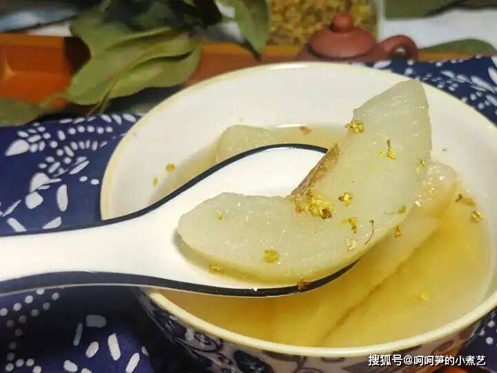 把桂花的香气和味道煮进梨子里。