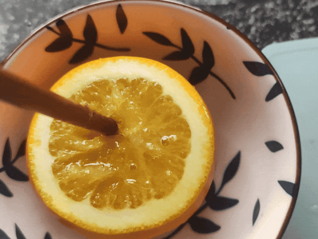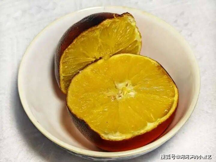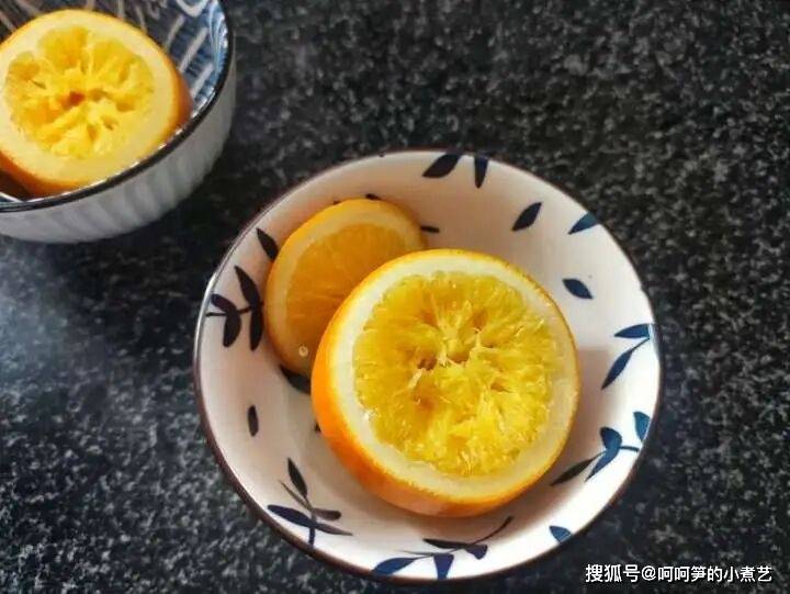 橙子蒸煮后可溶解在橙肉和橙汁中,而烤过以后疗效更好。 喜欢围炉煮茶的小吃货们可以放在烤网上烤,家里有柴火灶的可以丢进柴火堆里烤,也可以将橙子用一根筷子插着放在液化气上烤,当然这不太安全。