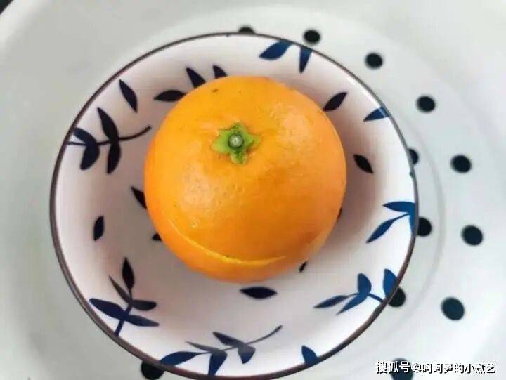 蒸好的橙子,去橙盖后明显看出橙子鼓起来变胖了。