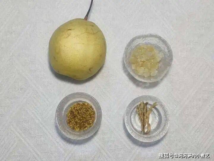 雪梨1个、冰糖适量、桂花适量、陈皮2g