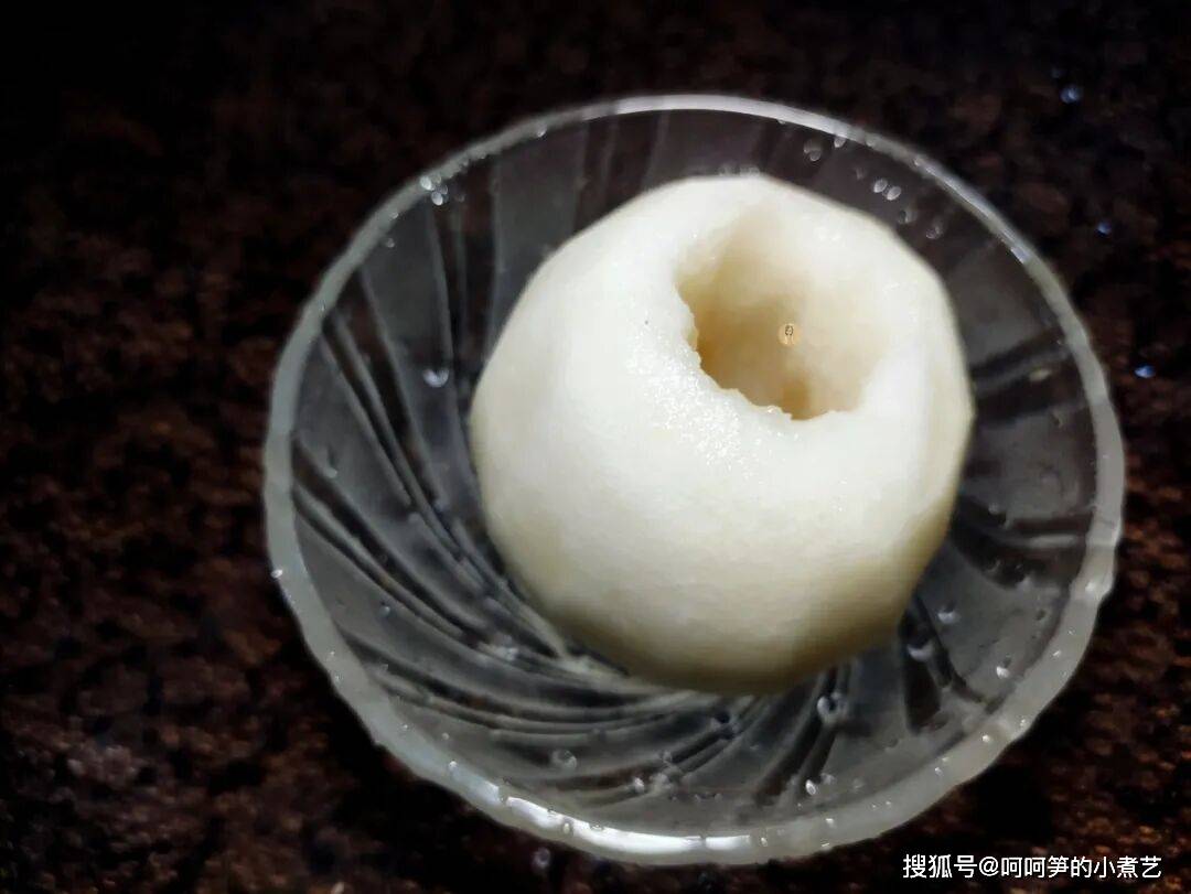 雪梨根据喜好去不去皮都行,挖掉内芯。