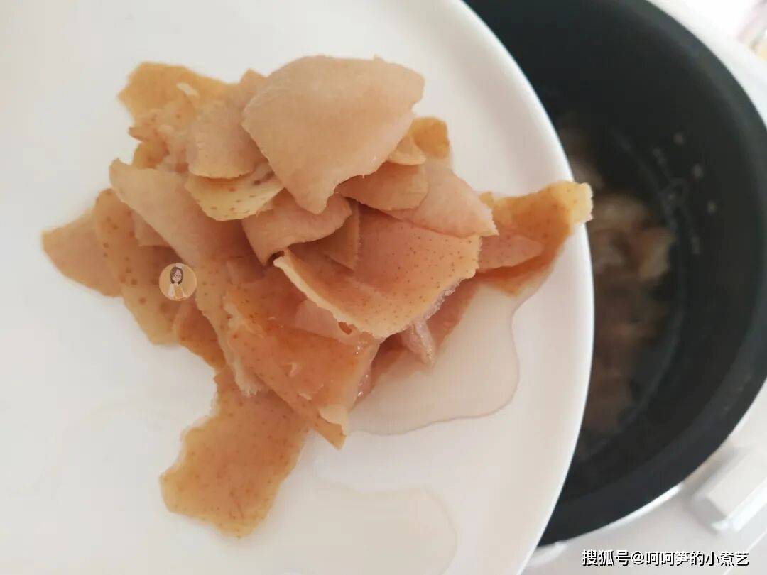差不多1.5小时,将银耳炖出稍稍起稠即可,不需要像银耳羹一样糊糊的,捞出梨皮。