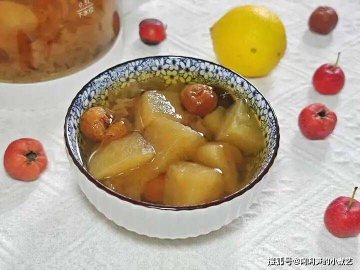 山楂苹果银耳糖水酸甜可口、老少皆宜。