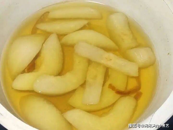放入雪梨块和陈皮。