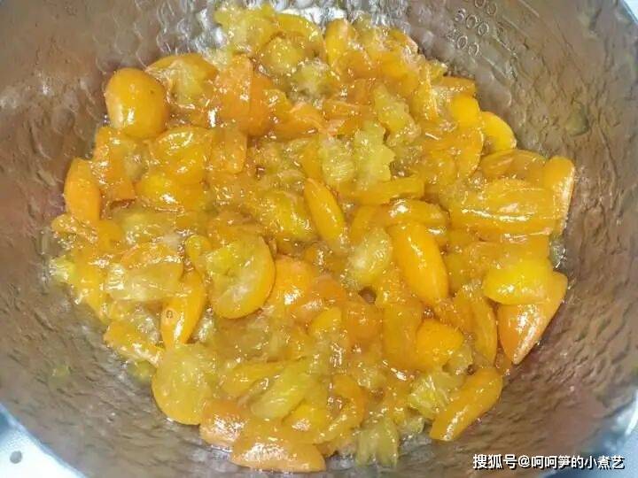 炒到金桔可以粘在刮刀上不掉就说明完全熬好了。