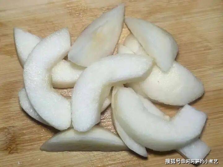 梨子去皮根据喜好切成合适的大小。
