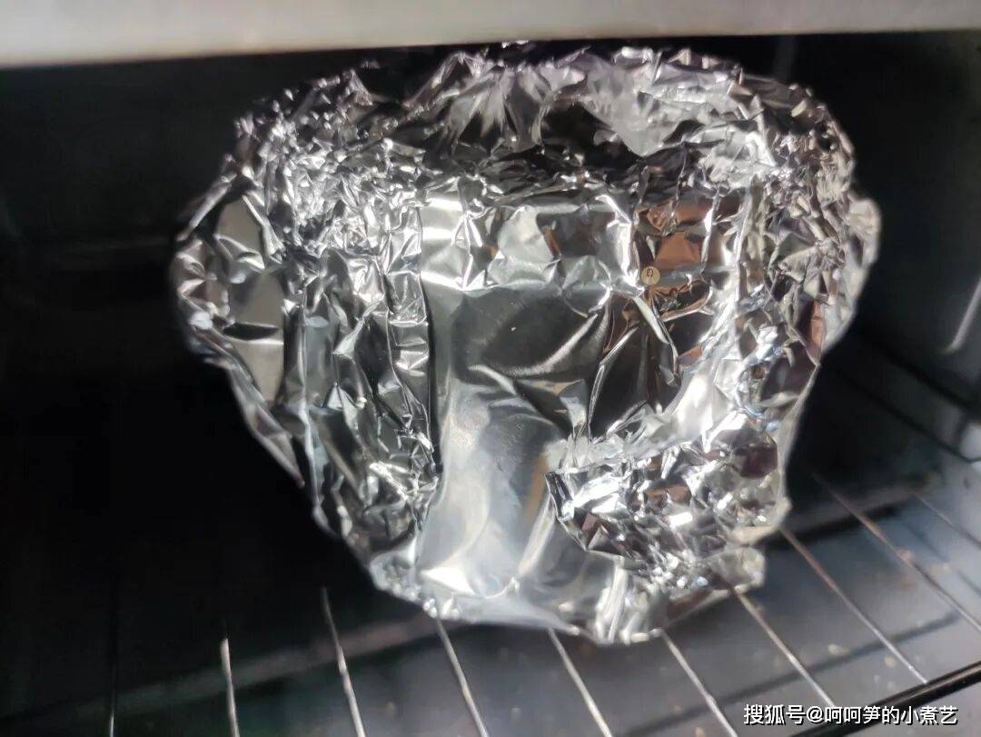 再包一层锡纸,这样可以让炖盅里的食材受热均匀。