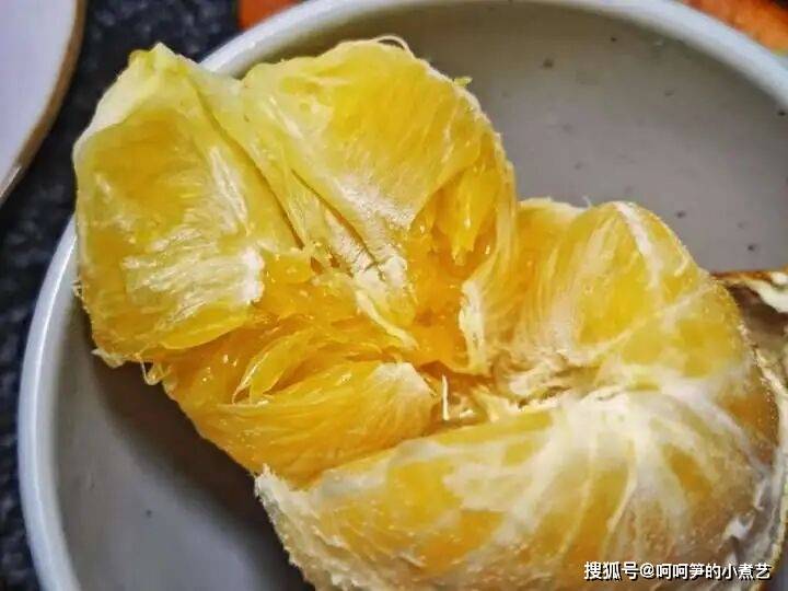 尝一口,果味更加浓郁,橙皮微苦的味道渗透进橙肉中,甜中又带点酸,口感更丰富,让橙子也多了几分清爽的味道。