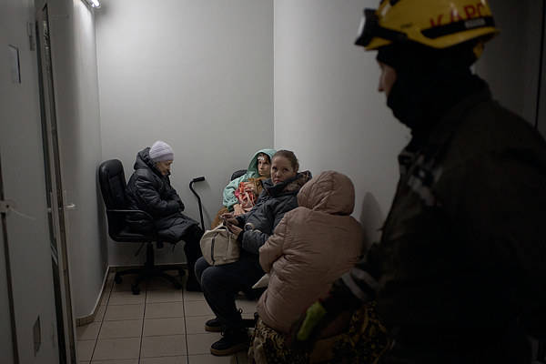 当地时间2025年12月27日,乌克兰基辅,遭大规模空袭后城市陷入寒冷与黑暗,当地居民在防空洞内躲避空袭警报。