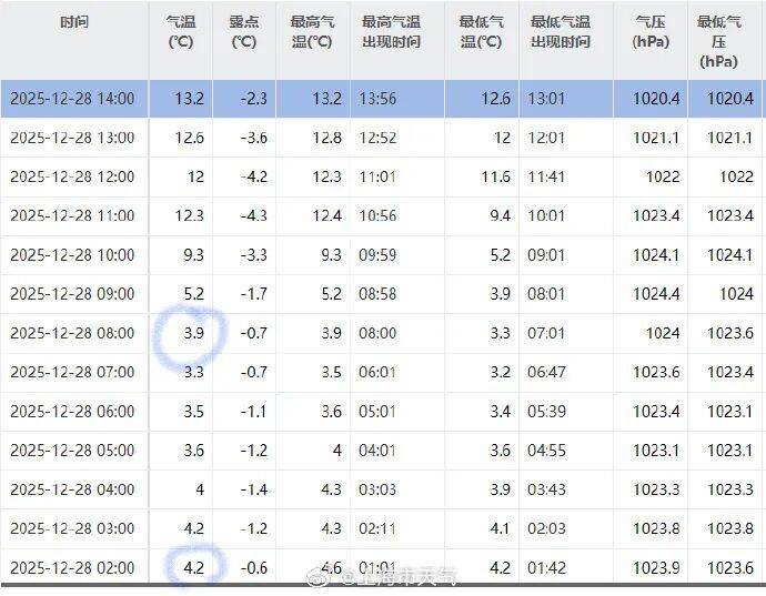 从12月24日起,徐家汇站已经连续4天日平均气温低于10℃,上海入冬冲刺就看今天!