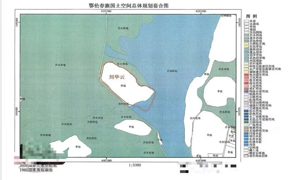 ▲鄂伦春旗国土空间总体规划套合图中,刘华云的涉案地块大部分为旱地。 受访者供图