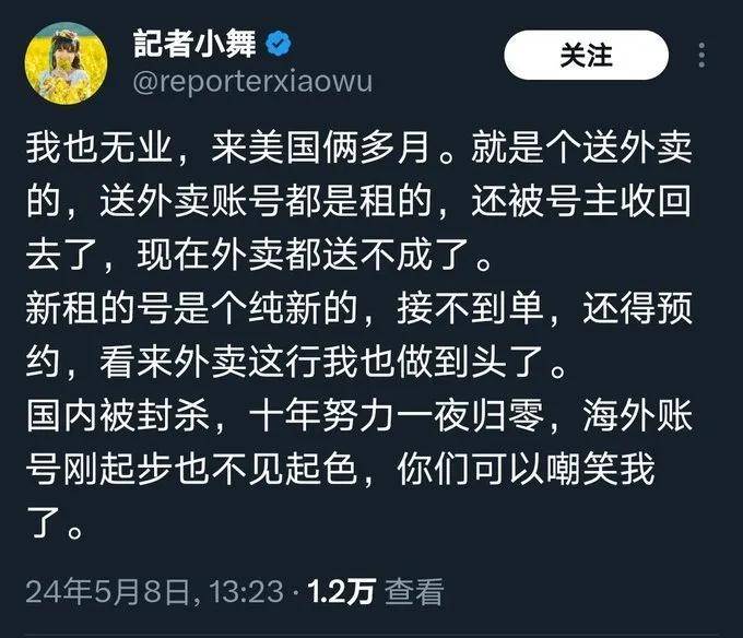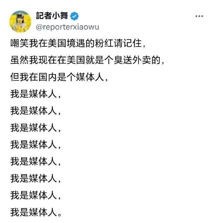 虽然在美国送外卖,生活过的困苦不堪,可是这不影响他在美国的社交媒体上侮辱、抹黑中国,甚至还扬言在美国即使是个送外卖的,可他也是一个媒体人。