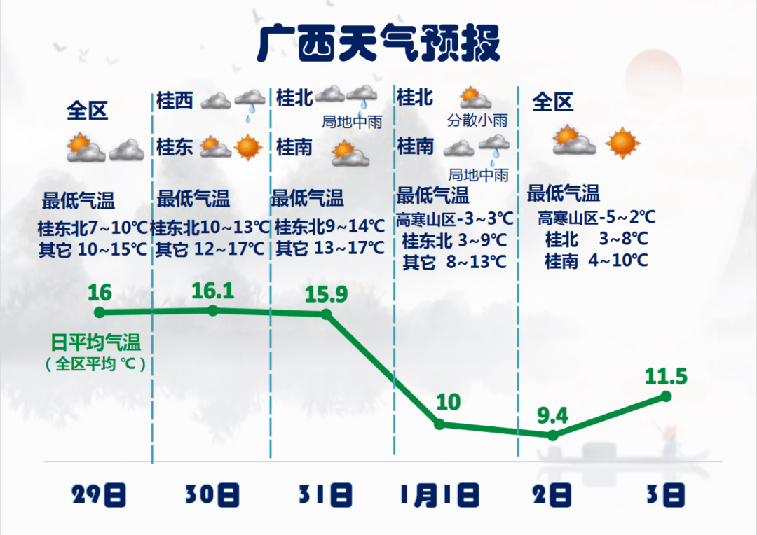 今起,将有三轮冷空气过程:12月29日—30日、12月30日—2026年1月2日、1月5日左右。