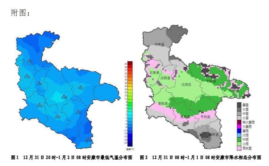 1月1日雨雪天气结束,受前期雨雪天气和冷空气持续影响,气温仍较低,预计最低气温将出现在1月2日清晨,川道地区-5~-1℃,中高山地区-10~-5℃,局地低于-10℃。