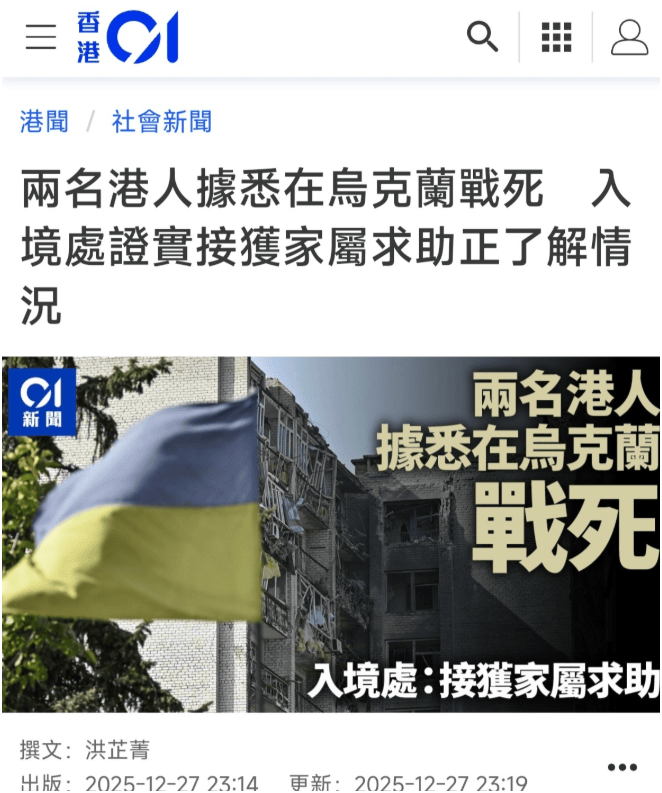 报道称两名港人在乌克兰前线死亡消息传回香港时,其家属都不知道两人去了乌克兰,情绪几乎崩溃。