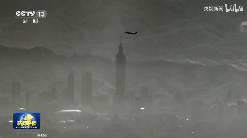 解放军无人机俯瞰台北101大楼。来源:央视《新闻联播》