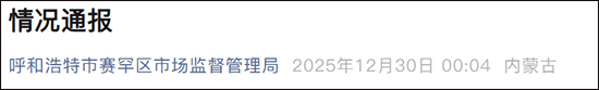 微信公众号“呼和浩特市赛罕区市场监督管理局”12月30日发布情况通报称: