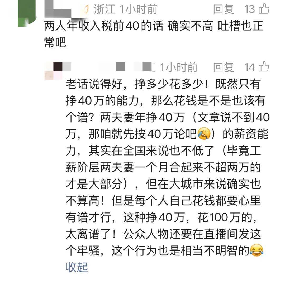 近日,闫学晶在直播间透露32岁的儿子年收入仅几十万元,却需负担家庭年开支80-100万元,否则家庭无法运转,引发不少网友质疑与争议。