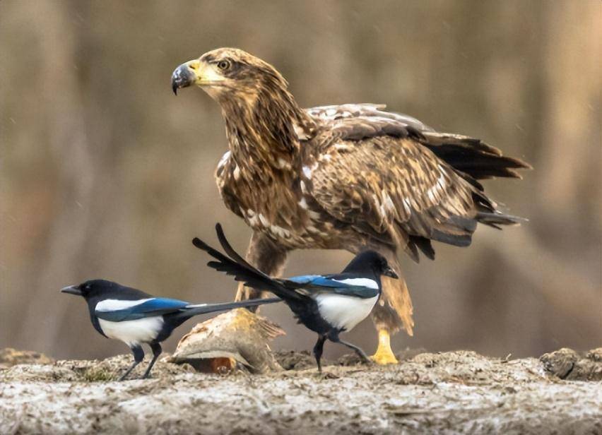 老鹰凭借强悍的攻击力,被誉为“空中霸主”。然而在日常生存中,它面对喜鹊时往往会选择避而远之。正所谓“强龙不压地头蛇”,面对喜鹊这类疯狂的“暴力团伙”,鲜有人愿意自找麻烦。