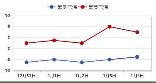 1月1日:多云间晴,傍晚到夜间短时阴有分散性小阵雪,北风3~4级转4~5级阵风6级,最低气温-6℃,最高气温1℃。