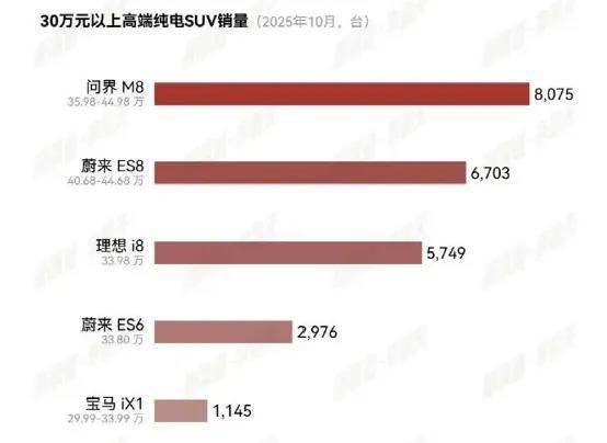 2025年10月中国30万元以上高端纯电SUV销量数据,来源:易车