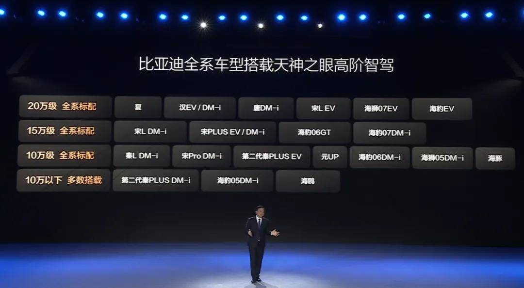2023年,王传福还公开称自动驾驶“都是扯淡,都是忽悠,就是一场皇帝的新装”。两年多时间过去,他却高阶智驾方案带到了10万级车型,引领了智驾平权化的趋势。