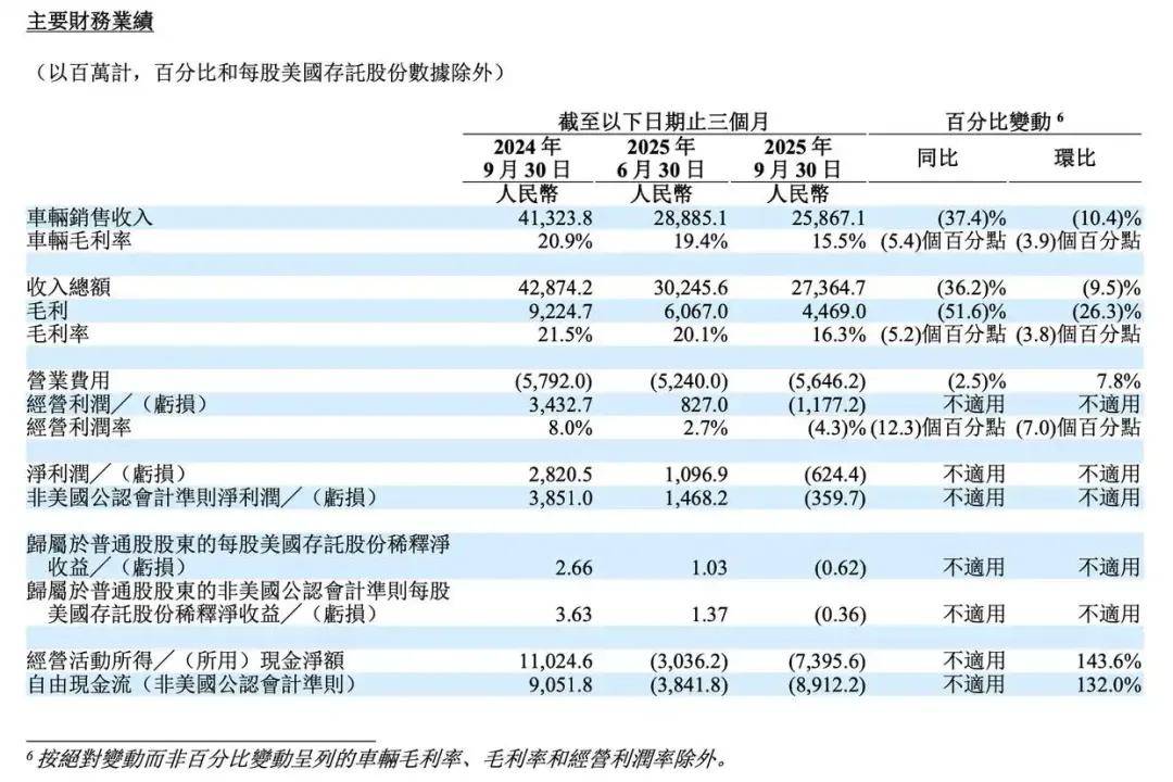 理想2025年三季度财务业绩,来源:理想2025年三季报