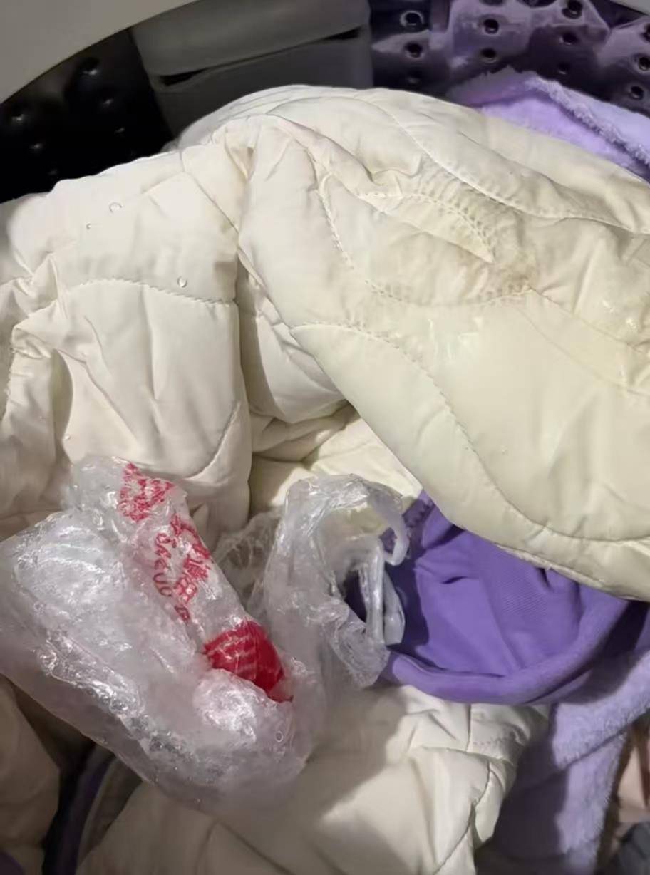 29日下午,极目新闻记者就此事咨询了化学领域的专家。专家解释,其核心原理主要有两条:一是物理“增摩”,塑料袋在水里不断翻滚、折叠,相当于给滚筒内部增加了若干片轻薄的“摩擦片”。它们与衣物、筒壁反复碰撞,能把原本只靠衣物相互摔打才能剥离的颗粒污渍再刮下一层,给机洗加了一层“机械打磨”工序。二是相似相溶,PE塑料和大多数皮脂油渍同属非极性物质,袋膜表面短暂接触油污时会发生“相似相溶”,把部分油膜从纤维上“拉”到自己表面。随着水流冲刷,这些被拉下来的油污再随漂洗排走,因此对儿童袖口、领口这类油性汗渍显得特别有效。