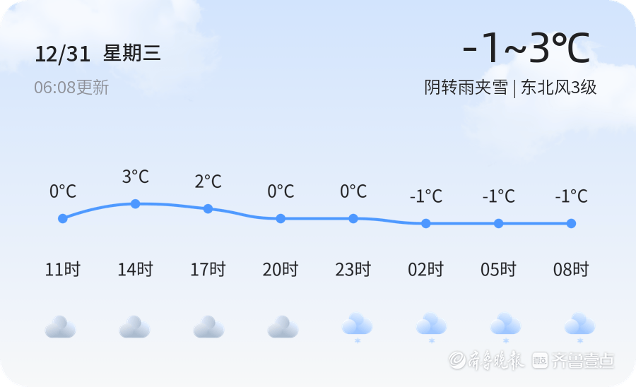 今天是2025年12月31日,农历十一月十二,菏泽市迎来阴转雨夹雪天气。目前气温为0.3℃,东北风3级,空气湿度68%,PM2.5指数为55,空气质量为良。今天的天气状况对市民出行有一定影响,阴雨夹雪天气可能导致路面湿滑,建议市民出行时注意防滑保暖,驾车时减速慢行,保持车距,确保行车安全。