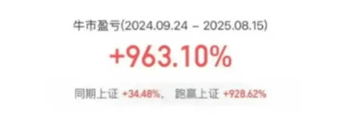 作为新生代实力游资,陈小群今年8月份曾在朋友圈晒出股市战绩截图:自2024年9月24日至2025年8月15日,账户累计收益达963.10%!一时间,轰动股民圈。